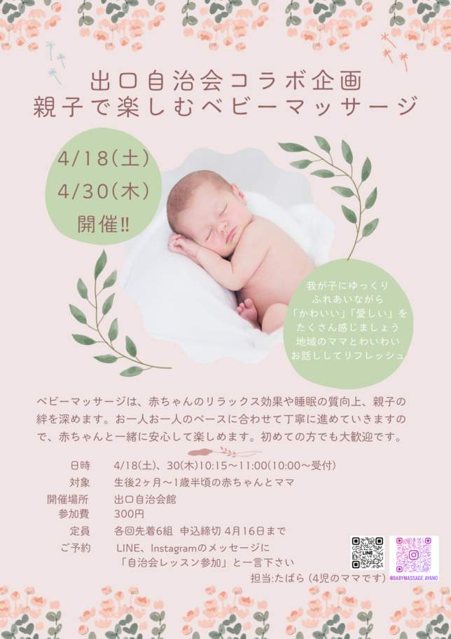 [回覧3月] 親子で楽しむベビーマッサージ4月開催分