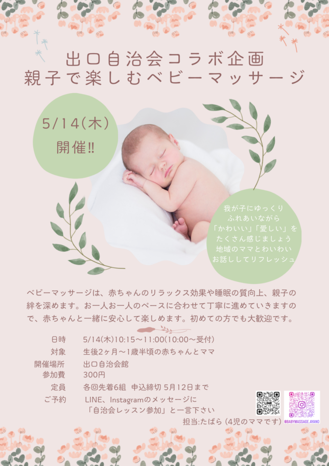 [回覧4月] 親子で楽しむベビーマッサージ5月開催分